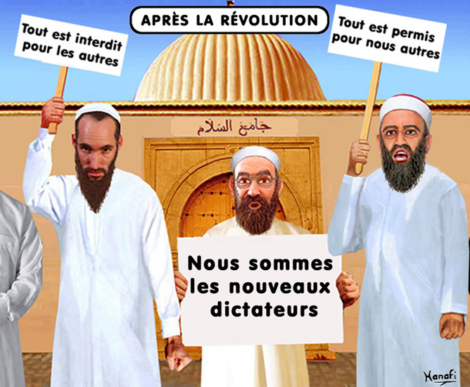 Les barbus après la Révolution Humour politique en Tunisie 2012 Médium : mixte 10" x 8" (26cm x 20cm) Collection : privée